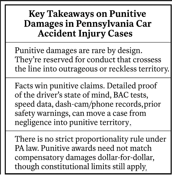 Summarizing Pennsylvania’s Approach to Punitive Damages in Car Accident Injury Cases